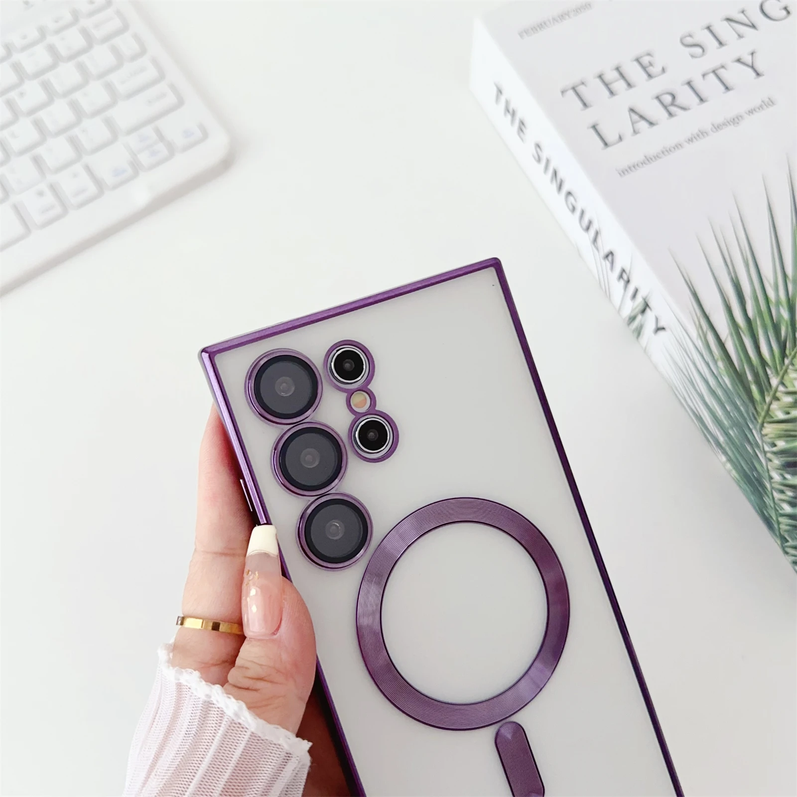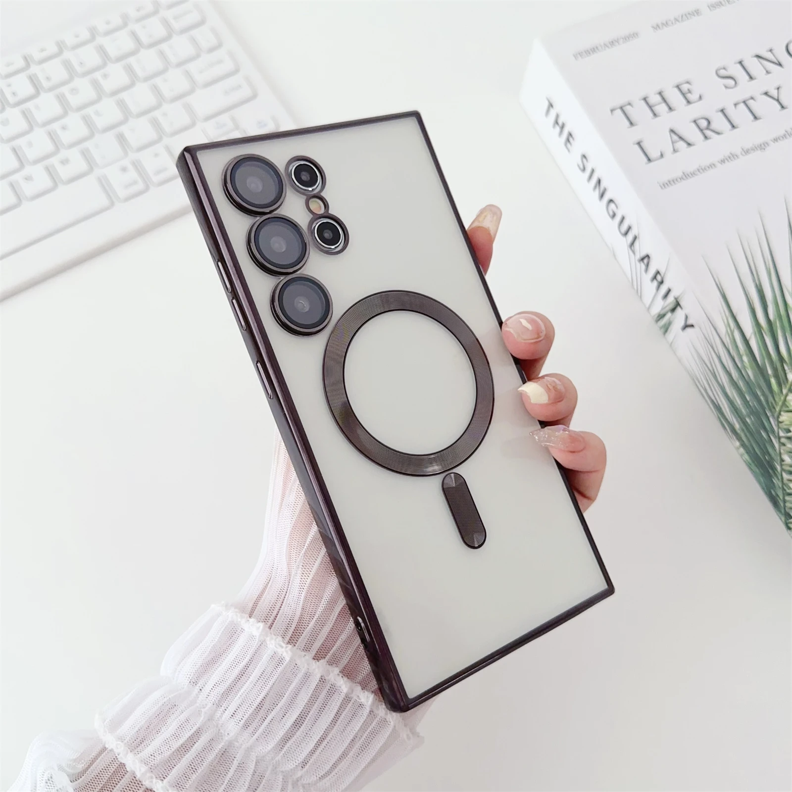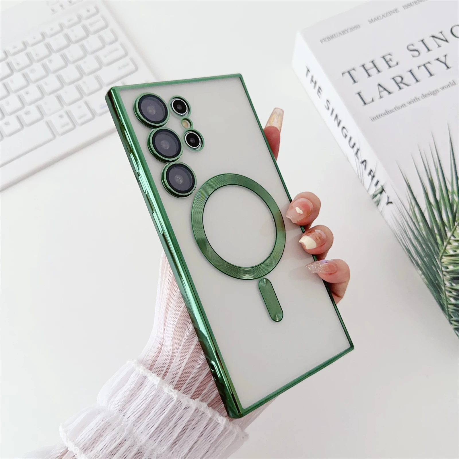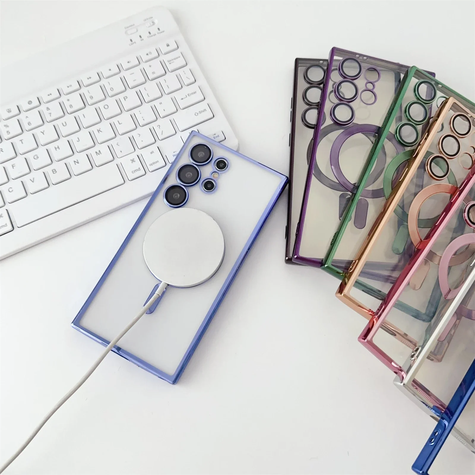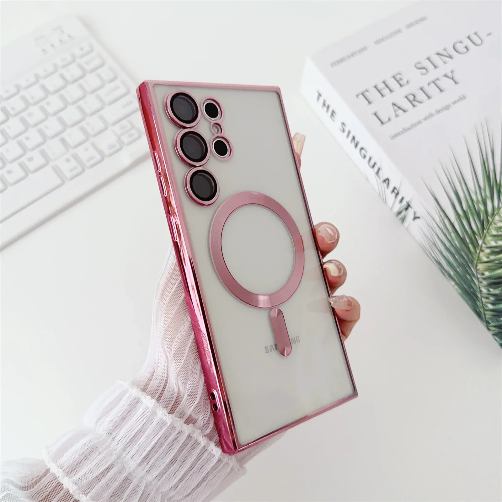 حافظة شحن لاسلكية مغناطيسية فاخرة لهاتف Magsafe لهاتف سامسونج جالاكسي S25 S24 S23 S22 S21 FE Plus Note 10 20 Ultra