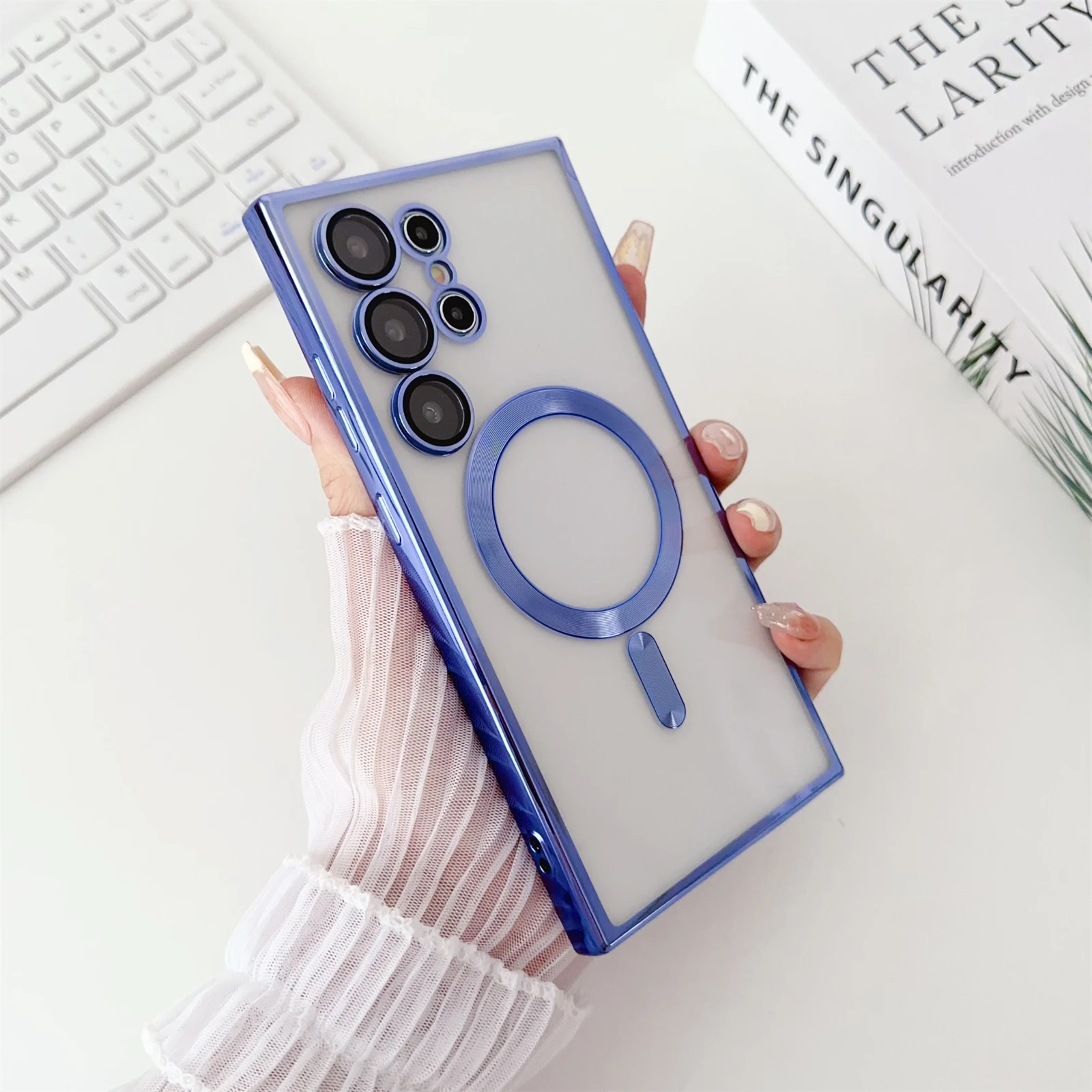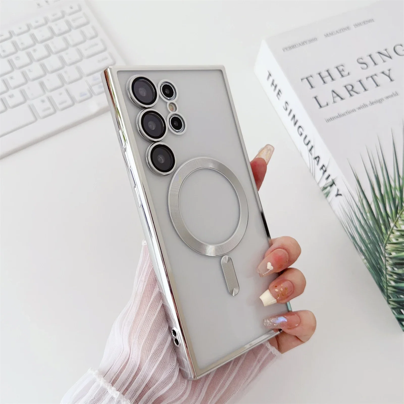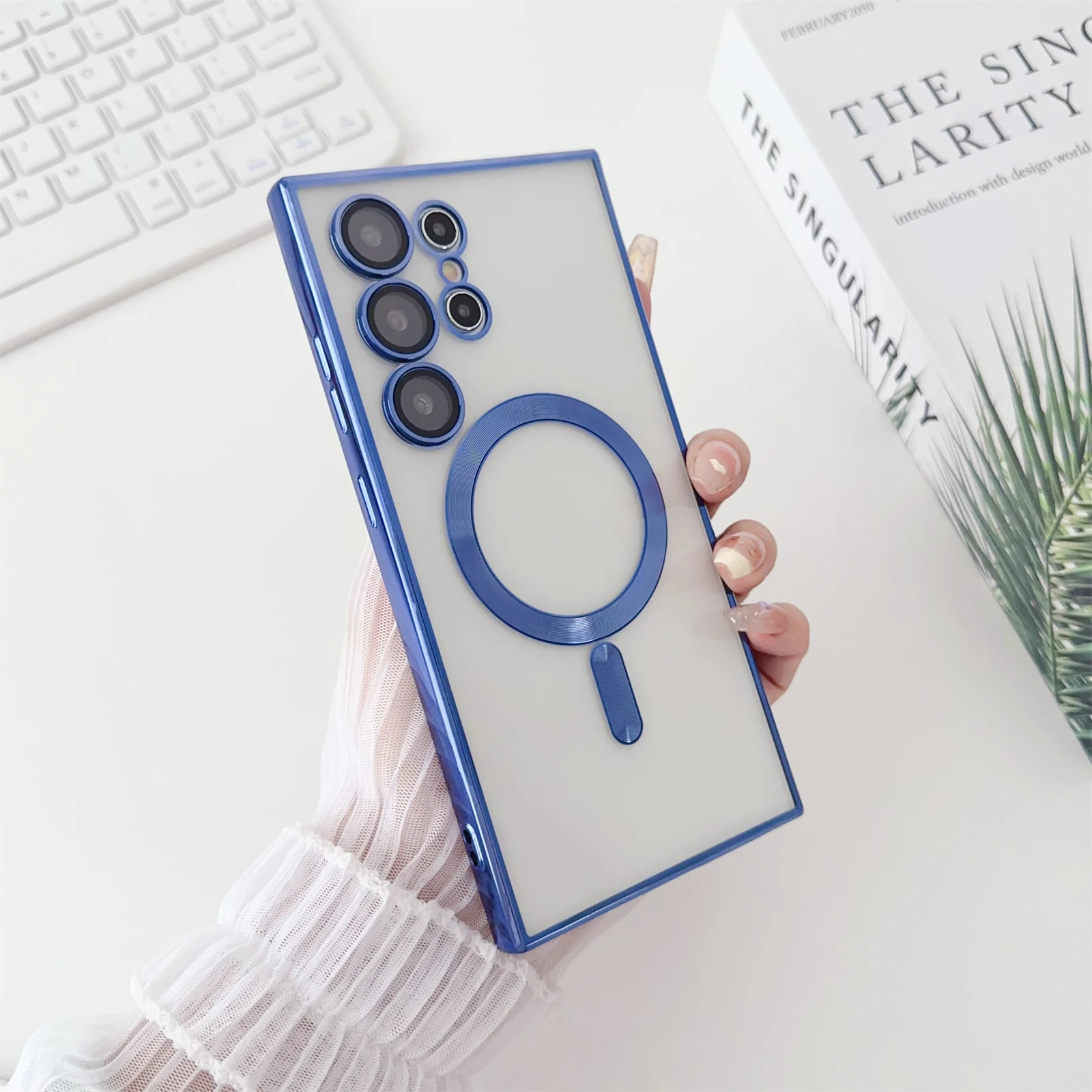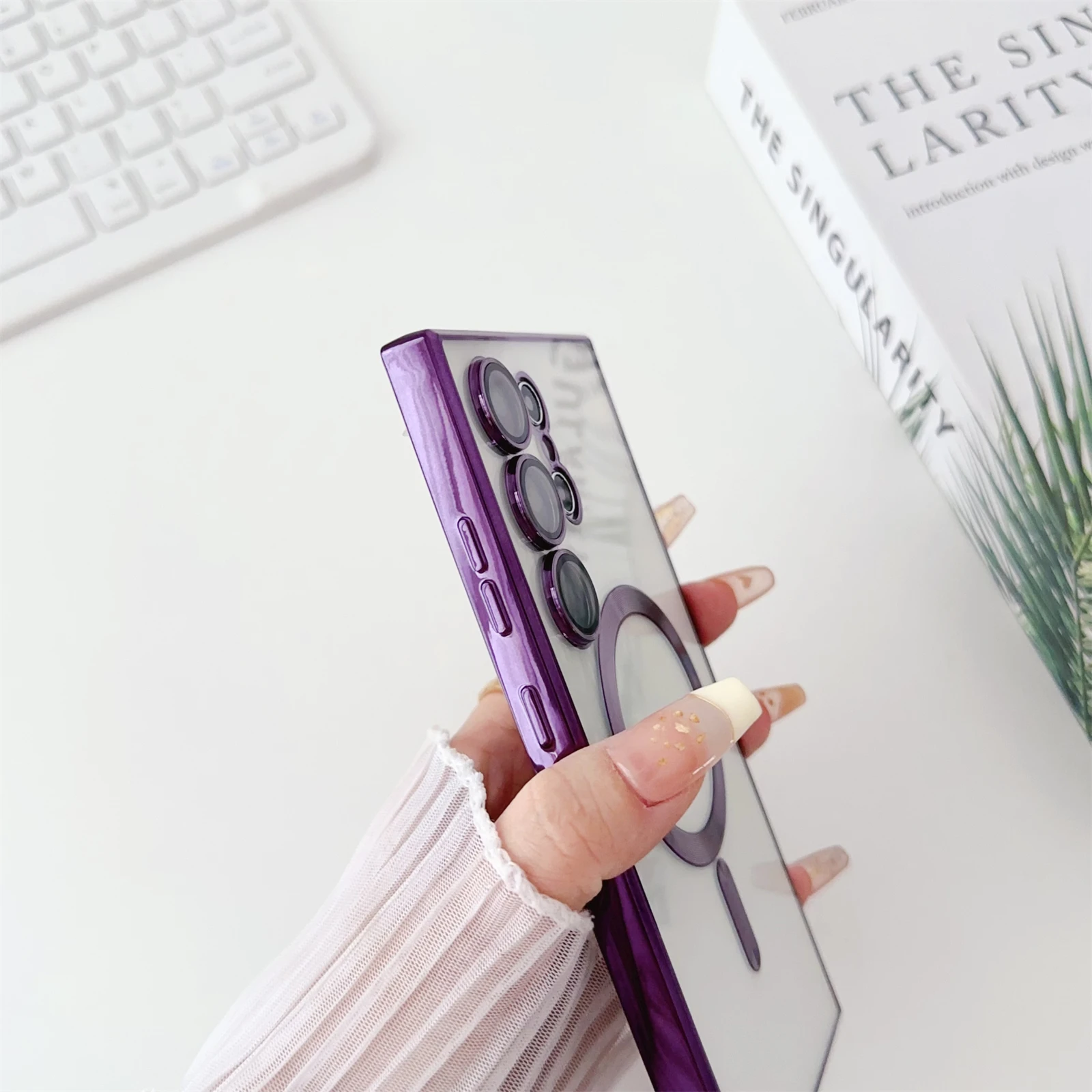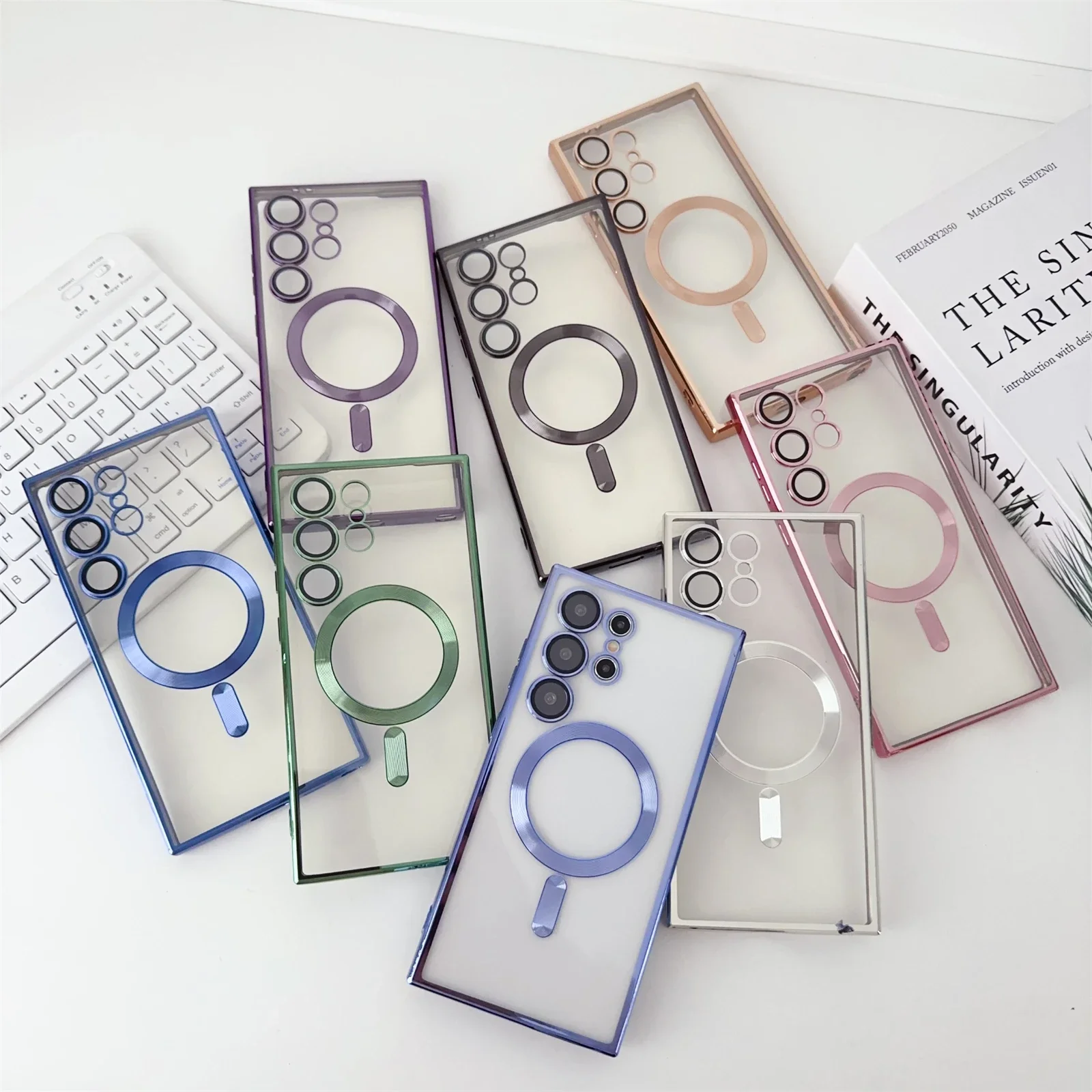 حافظة شحن لاسلكية مغناطيسية فاخرة لهاتف Magsafe لهاتف سامسونج جالاكسي S25 S24 S23 S22 S21 FE Plus Note 10 20 Ultra