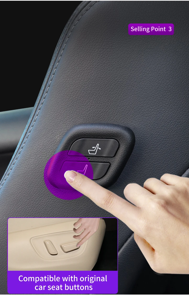 4. الميزات: من المناسب للسائقين أو الركاب الخلفيين استخدام هذا الزر لضبط وضعية الحركة الأمامية والخلفية بسهولة وزاوية مسند الظهر لمقعد القيادة الرذيلة.