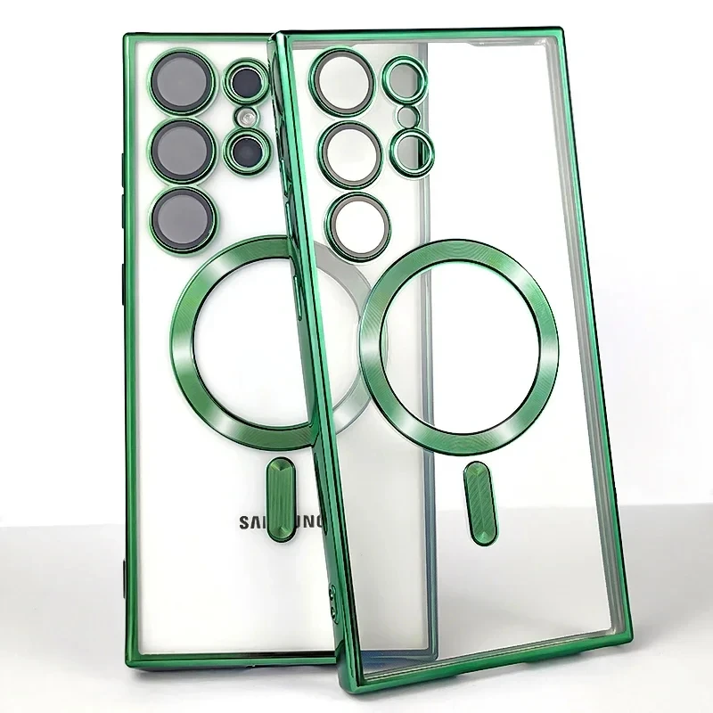 حافظة شحن لاسلكية مغناطيسية فاخرة لهاتف Magsafe لهاتف سامسونج جالاكسي S25 S24 S23 S22 S21 FE Plus Note 10 20 Ultra