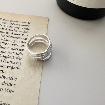 BF CLUB 925 خواتم الاسترليني للنساء موضة هندسية اليدوية غير النظامية Interware خطوط حلقة حفلة هدية الكريسماس