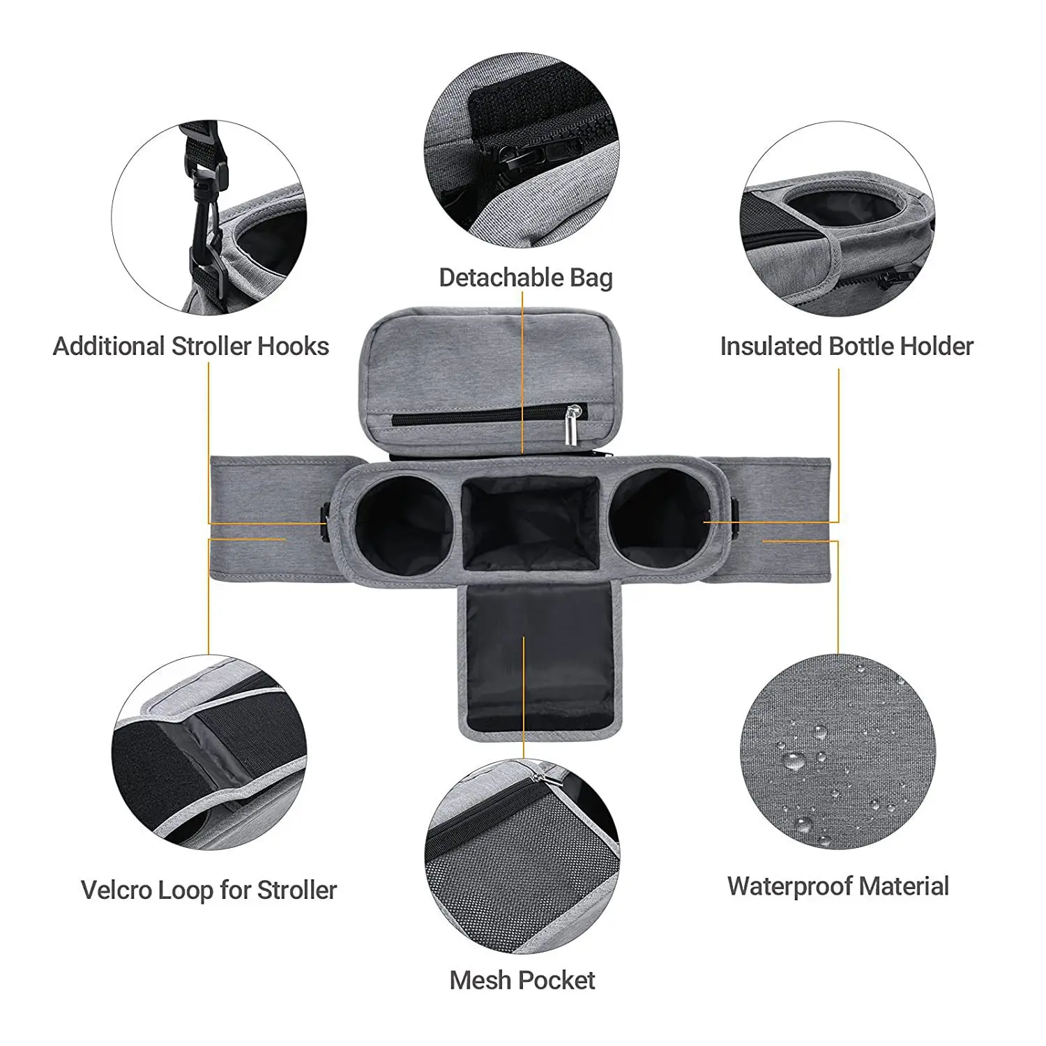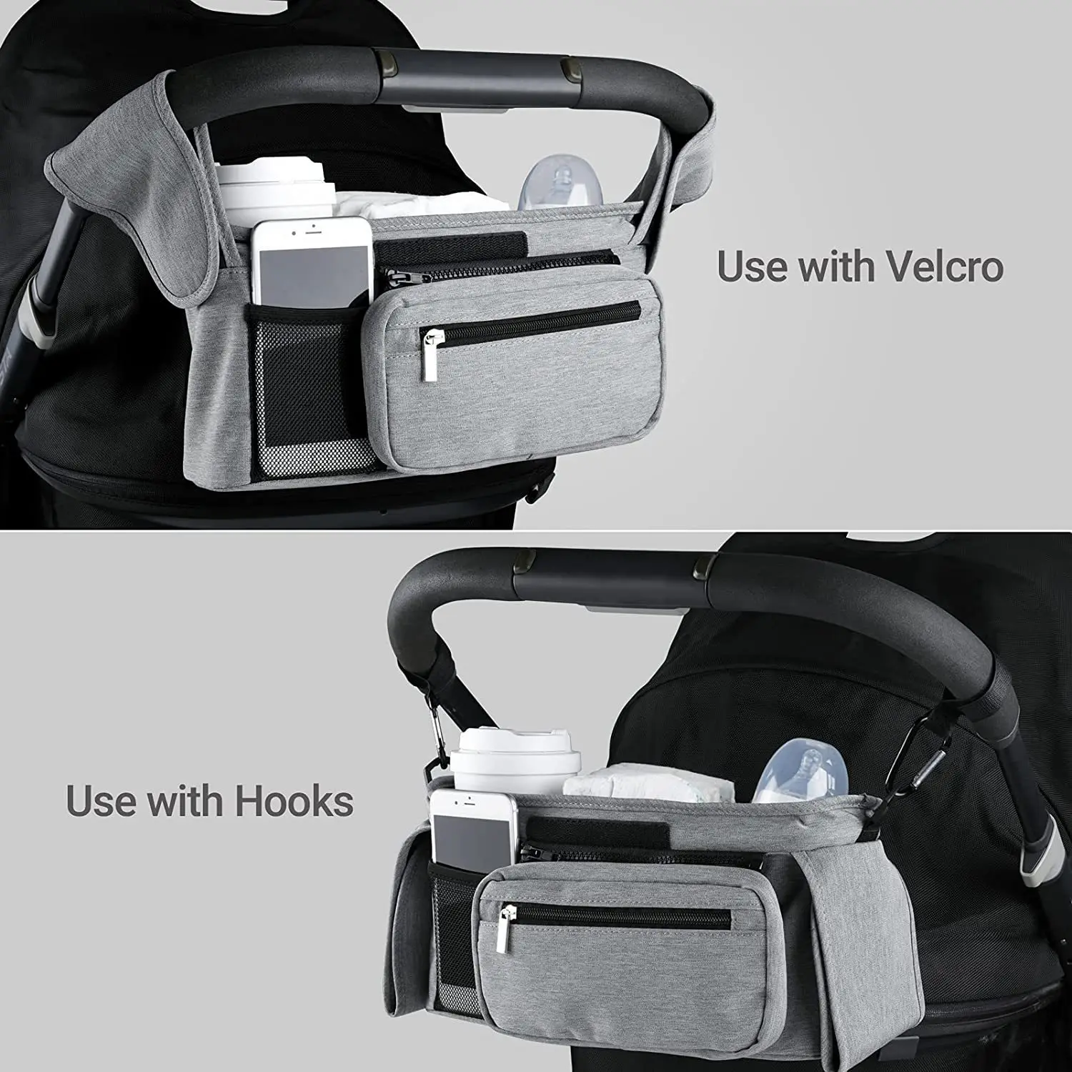 حقيبة معلقة بسعة كبيرة لعربة الأطفال ، حقيبة تخزين الأمهات ، حامل زجاجة الهاتف ، أكياس حفاضات عربة الأطفال ، اكسسوارات السفر