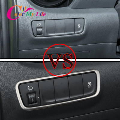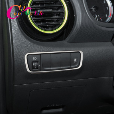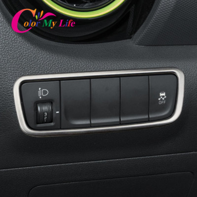 غطاء لوحة لمفتاح المصباح الأمامي من الفولاذ المقاوم للصدأ ، دائرة ، ملحقات لهيونداي كونا ، كونا ، من من الخارج ، 1.