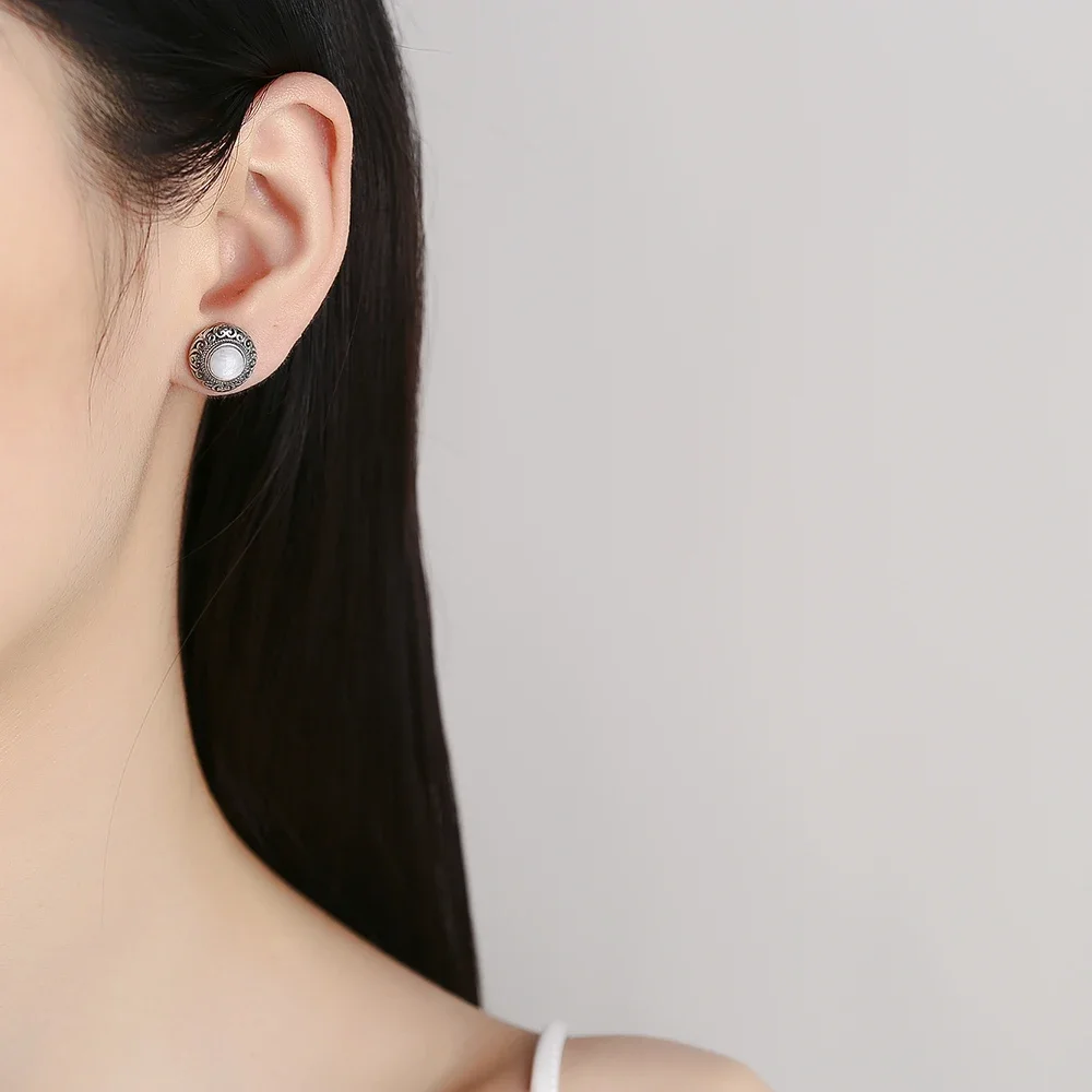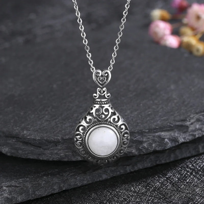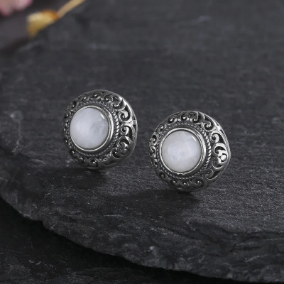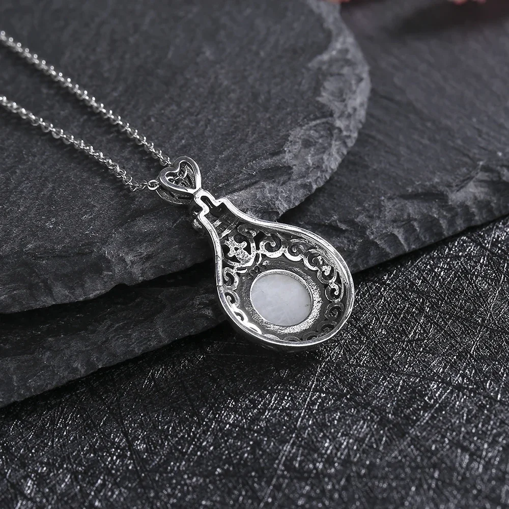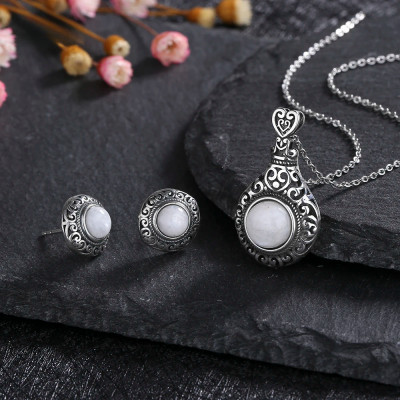 قلادة S925 من الفضة الخالصة للنساء ، حجر القمر الطبيعي ، أقراط مجوفة ، مجموعات مجوهرات أنيقة مطرزة بالخرز ، هدايا