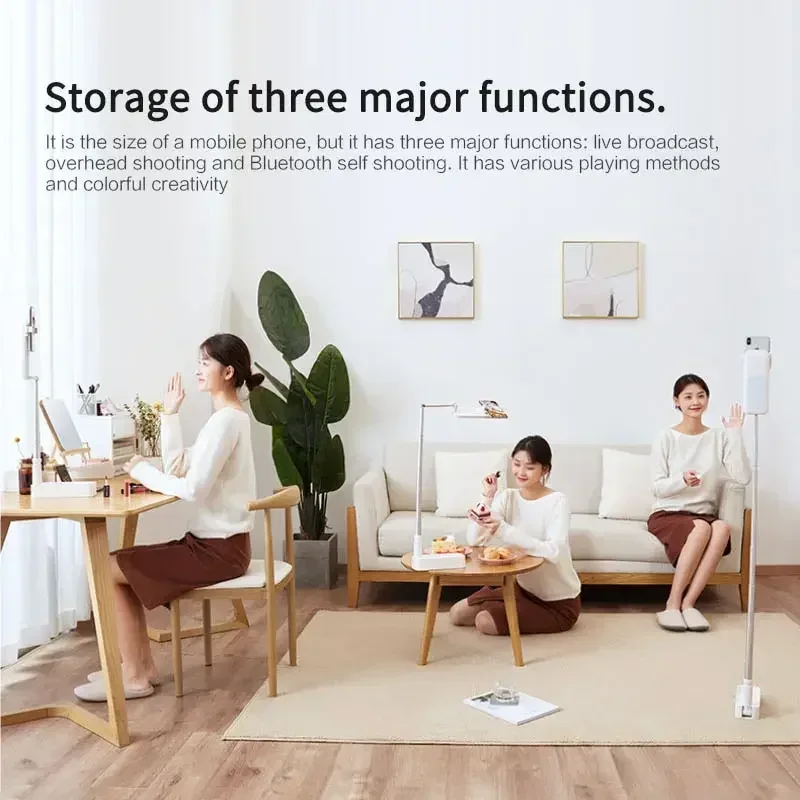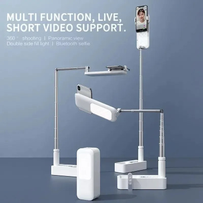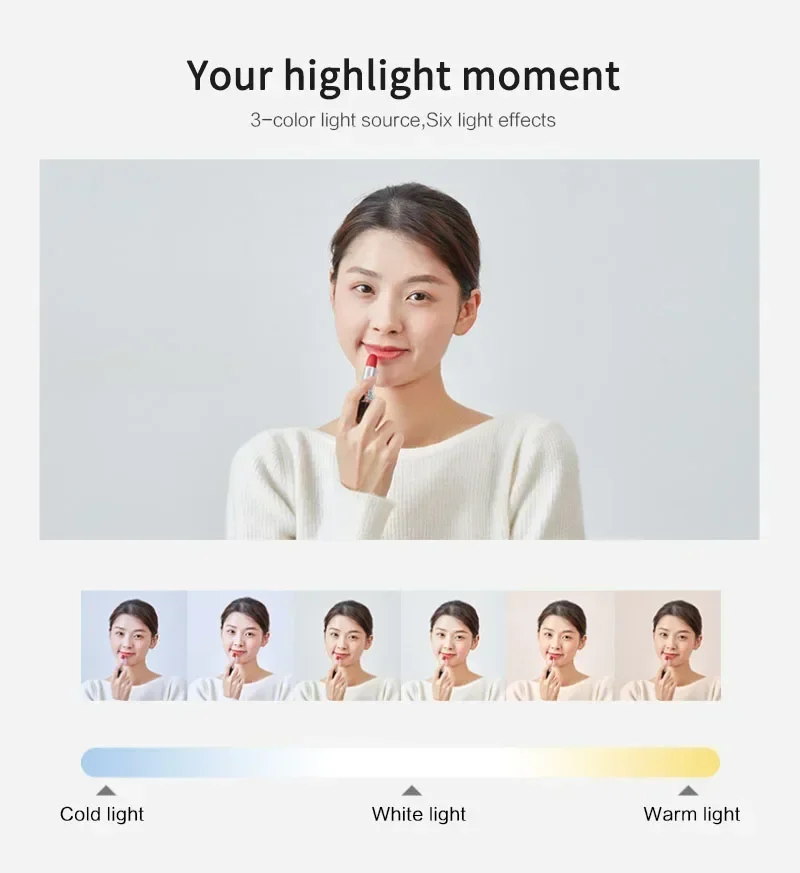 3. توجد مصابيح LED على الجزء الأمامي والخلفي لحامل الهاتف ، تدعم ثلاثة أوضاع إضاءة: بارد/مختلط/دافئ ، مما يجعلك تبدو أكثر جمالا أثناء البث المباشر.